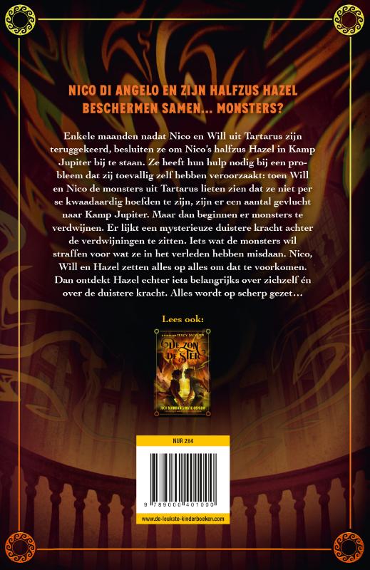Nico Di Angelo en zijn halfzus Hazel beschermen samen... monsters? Enkele maanden nadat Nico en Will uit Tartarus zijn teruggekeerd, besluiten ze om Nico’s halfzus Hazel in Kamp Jupiter bij te staan. Ze heeft hun hulp nodig bij een probleem dat zij toevallig zelf hebben veroorzaakt: toen Will en Nico de monsters uit Tartarus lieten zien dat ze niet per se kwaadaardig hoefden te zijn, zijn er een aantal gevlucht naar Kamp Jupiter. Maar dan beginnen er monsters te verdwijnen. Er lijkt een mysterieuze duistere kracht achter de verdwijningen te zitten. Iets wat de monsters wil straffen voor wat ze in het verleden hebben misdaan. Nico, Will en Hazel zetten alles op alles om dat te voorkomen. Dan ontdekt Hazel echter iets belangrijks over zichzelf én over de duistere kracht. Alles wordt op scherp gezet… 'Hof van de Doden' is het vervolg op 'De zon en de ster'. ** Meer van Rick Riordan: De Percy Jackson en de Olympiërs-serie De helden van Olympus-serie De beproevingen van Apollo-serie De avonturen van de familie Kane-serie Magnus Chase en de goden van Asgard-serie *** Percy Jackson en de Griekse goden Percy Jackson en de andere helden Kamp Halfbloed Vertrouwelijk Dochter van de diepzee De zon en de ster