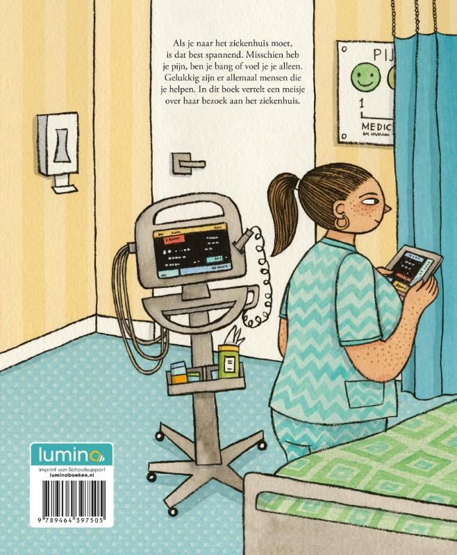 Als je naar het ziekenhuis moet, is dat best spannend. Misschien heb je pijn, ben je bang of voel je je alleen. Gelukkig zijn er allemaal mensen die je helpen. In dit boek vertelt een meisje over haar bezoek aan het ziekenhuis.