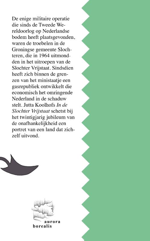 De enige militaire operatie die sinds de Tweede Wereldoorlog op Nederlandse bodem heeft plaatsgevonden, waren de troebelen in de Groningse gemeente Slochteren, die in 1964 uitmondden in het uitroepen van de Slochter Vrijstaat. Sindsdien heeft zich binnen de grenzen van het ministaatje een gasrepubliek ontwikkeld die economisch het omringende Nederland in de schaduw stelt. --- In 1984 bezoekt reisjournalist Jutta Koolhof de Vrijstaat tijdens de viering van het twintigjarig jubileum. Door haar ogen vertelt schrijver Auke Hulst In de Slochter Vrijstaat de alternatieve geschiedenis van een onafhankelijk Slochteren en schetst ze een portret van een land dat zichzelf uitvond. --- In de Slochter Vrijstaat is een uitgave van Noorderlicht in samenwerking met BPD Cultuurfonds en Uitgeverij Palmslag.