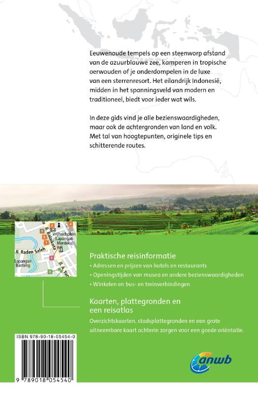 ANWB Wereldreisgids IndonesiĆ« De ANWB Wereldreisgids IndonesiĆ« is een complete en praktische reisgids voor jouw droomvakantie door IndonesiĆ«. Het land van oude tempels op steenworp afstand van een azuurblauwe zee en het Nationaal Park Bali Barat. Maar ook van grote steden vol bezienswaardigheden zoals het stadhuis van Jakarta en het Geologisch Museum in Bandung. De uitgebreide IndonesiĆ« reisgids telt bijna 600 paginaās en staat boordevol hoogtepunten, originele tips, schitterende wandelroutes en alles over de achtergronden van land en volk. Daarnaast krijg je alle praktische informatie zoals openingstijden van musea, tips voor overnachtingen en vervoerstijden. Inclusief stadsplattegronden, overzichtskaarten en een grote uitneembare kaart. Kortom: een onmisbare gids voor een geweldige rondreis door IndonesiĆ«.