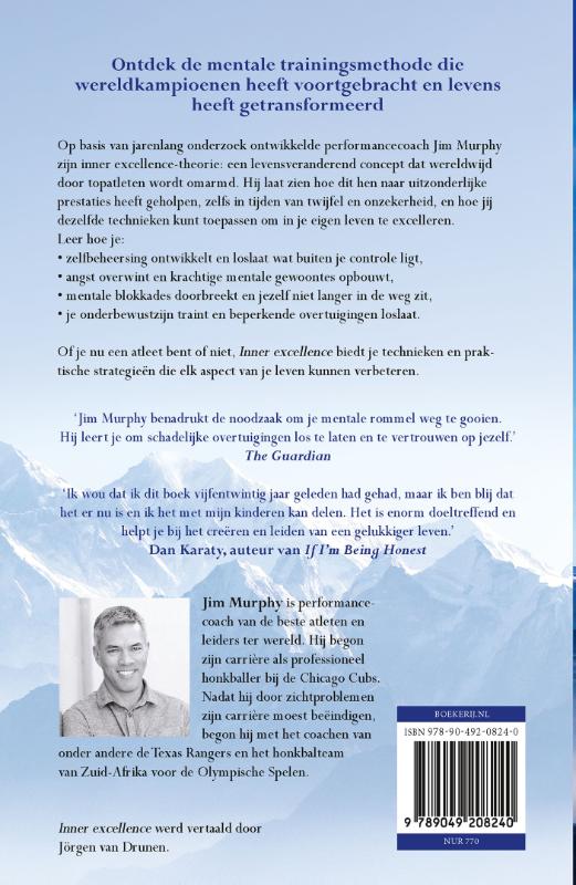 Leer van een van ’s werelds beste mental coaches hoe je dezelfde mindset kunt ontwikkelen als topsporters en zo een buitengewoon leven kunt leiden Ontdek de mentale trainingsmethode die wereldkampioenen heeft voortgebracht en levens heeft getransformeerd Op basis van jarenlang onderzoek ontwikkelde performancecoach Jim Murphy zijn inner excellence-theorie: een levensveranderend concept dat wereldwijd door topatleten wordt omarmd. Hij laat zien hoe dit hen naar uitzonderlijke prestaties heeft geholpen, zelfs in tijden van twijfel en onzekerheid, en hoe jij dezelfde technieken kunt toepassen om in je eigen leven te excelleren. Leer hoe je: • zelfbeheersing ontwikkelt en loslaat wat buiten je controle ligt, • angst overwint en krachtige mentale gewoontes opbouwt, • mentale blokkades doorbreekt en jezelf niet langer in de weg zit, • je onderbewustzijn traint en beperkende overtuigingen loslaat. Of je nu een atleet bent of niet, Inner excellence biedt je technieken en prak-tische strategieën die elk aspect van je leven kunnen verbeteren. In de pers ‘Het boek dat zó behulpzaam is dat A.J. Brown van de Eagles het tijdens een wedstrijd las.’ The New York Times ‘Jim Murphy benadrukt de noodzaak om je mentale rommel weg te gooien. Hij leert je om schadelijke overtuigingen los te laten en te vertrouwen op jezelf.’ The Guardian ‘ Ik wou dat ik dit boek 25 jaar geleden had gehad, maar ik ben blij dat het er nu is en ik het met mijn kinderen kan delen. Het is enorm doeltreffend en helpt je bij het creëren en leiden van een gelukkiger leven.’ Dan Karaty, auteur van If I’m Being Honest
