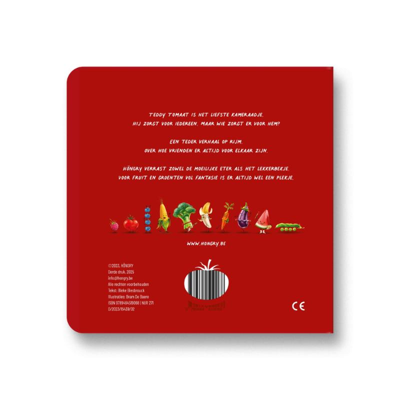 Teddy Tomaat is het liefste kameraadje. Hij zorgt voor iedereen. Maar wie zorgt voor hem? Een teder verhaal vol klinkende klanken op speelse rijm. Over hoe vrienden er altijd voor elkaar zijn. Leer in dit boekje, samen met je maatje, 10 fruitige woordjes.