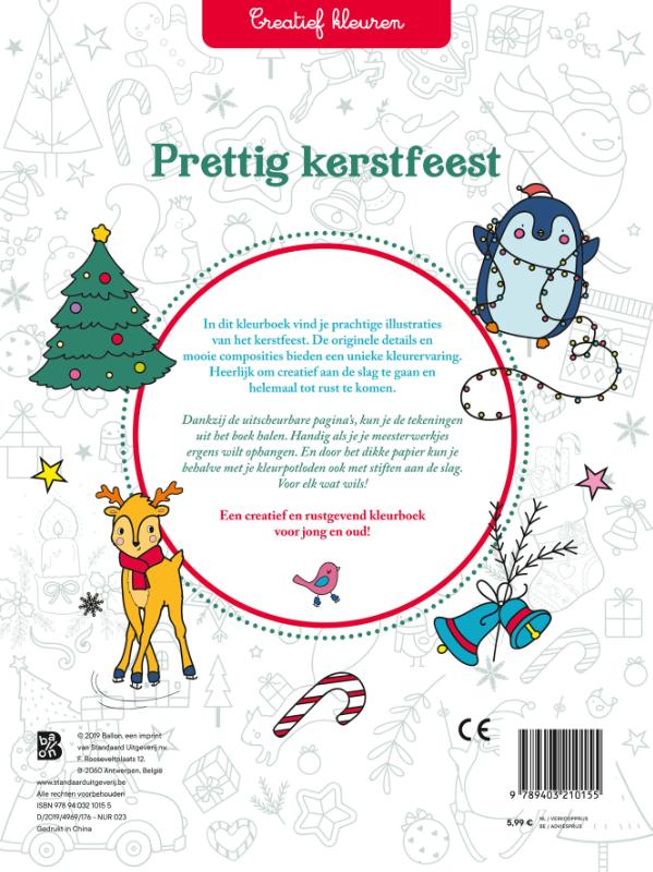 In dit kleurboek vind je prachtige illustraties van het kerstfeest. De originele details en mooie composities bieden een unieke kleurervaring. Heerlijk om creatief aan de slag te gaan en helemaal tot rust te komen. Dankzij de uitscheurbare pagina's, kun je de tekeningen uit het boek halen. Handig als je je meesterwerkjes ergens wilt ophangen. En door het dikke papier kun je behalve met je kleurpotloden ook met stiften aan de slag. Voor elk wat wils! Een creatief en rustgevend kleurboek voor jong en oud!