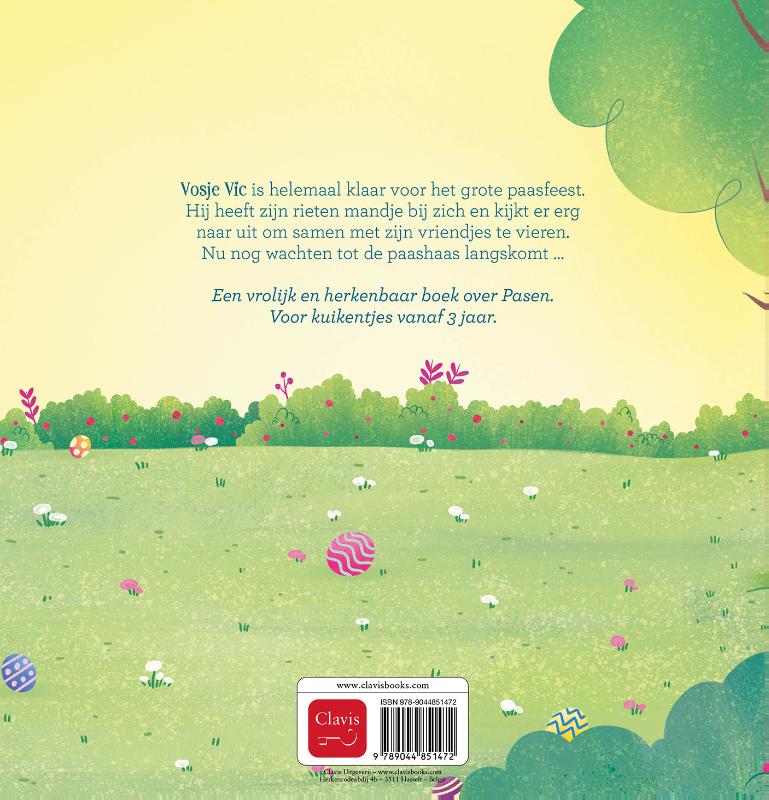 Vosje Vic is helemaal klaar voor het grote paasfeest. Hij heeft zijn rieten mandje mee, en hij kijkt er erg naar uit om samen met zijn vriendjes te vieren. Nu nog wachten tot de paashaas langskomt … Een vrolijk en herkenbaar prentenboek over Pasen. Voor paaskindjes vanaf 3 jaar.