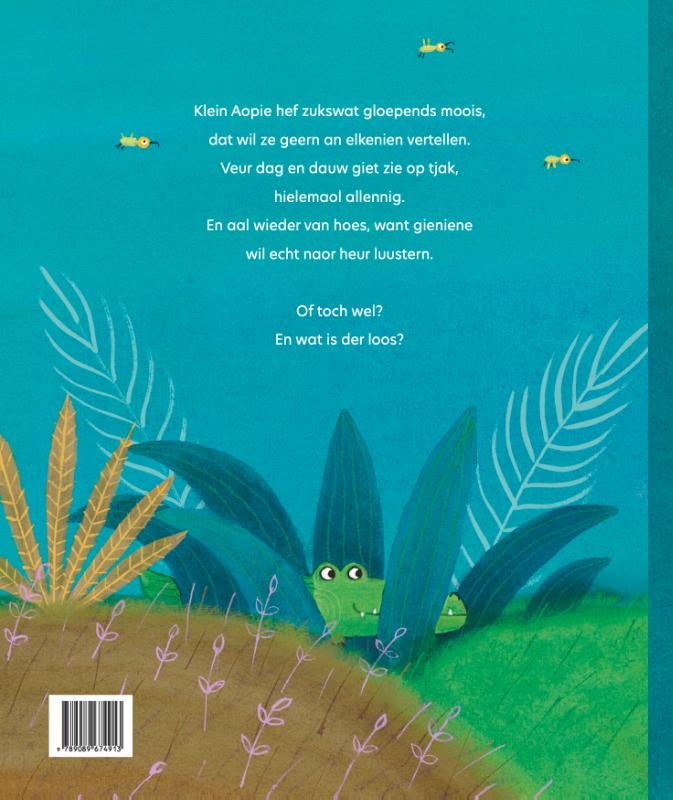 Klein Aopie hef zukswat gloepends moois, dat wil ze geern an elkenien vertellen. Veur dag en dauw giet zie op tjak, hielemaol allennig. En aal wieder van hoes, want gieniene wil echt naor heur luustern. Of toch wel? En wat is der loos?