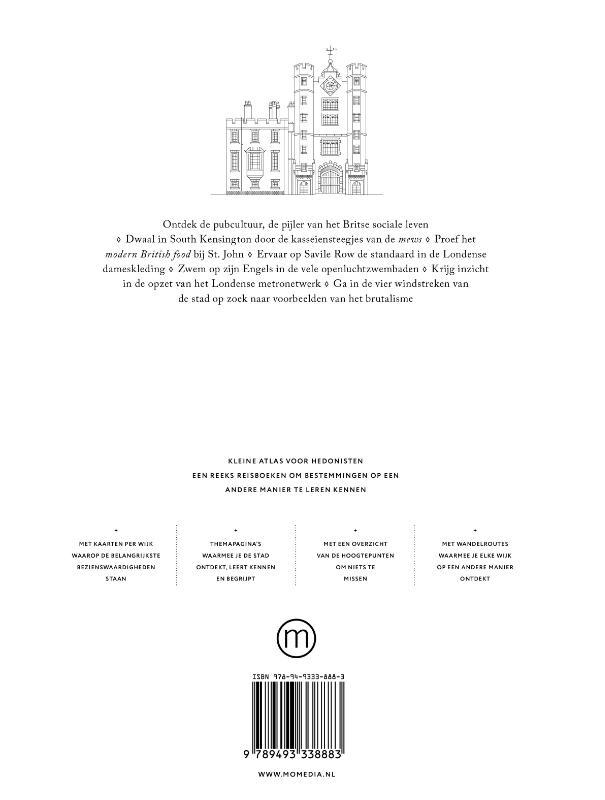 Ontdek de pubcultuur, de pijler van het Britse sociale leven. Dwaal in South Kensington door de kasseiensteegjes van de mews. Proef het modern British food bij St. John. Ervaar op Savile Row de standaard in de Londense dameskleding. Zwem op zijn Engels in de vele openluchtzwembaden. Krijg inzicht in de opzet van het Londense metronetwerk. Ga in de vier windstreken van de stad op zoek naar voorbeelden van het brutalisme.