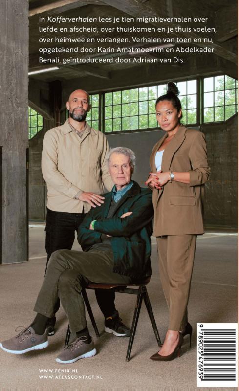 In Kofferverhalen lees je tien migratieverhalen over liefde en afscheid, over thuiskomen en je thuis voelen, over heimwee en verlangen. Verhalen van toen en nu, opgetekend door Karin Amatmoekrim en Abdelkader Benali, geïntroduceerd door Adriaan van Dis. Fenix is een nieuw kunstmuseum over migratie. In een historische havenloods, op dé plek van vertrek en aankomst in de stad Rotterdam. Onderdeel van de vaste collectie van het museum is Het Kofferdoolhof, een installatie van 2000 aan het museum gedoneerde koffers uit binnen- en buitenland. Elke koffer draagt een verhaal met zich mee. In het doolhof luister je naar deze verhalen en zo kom je meer te weten over de eigenaren van de koffers en hun ervaringen met vertrek en aankomst, heimwee, hoop, verlangen en liefde. Karin Amatmoekrim en Abdelkader Benali tekenen in Kofferverhalen tien verhalen op. Adriaan van Dis leidt het boek in met een beschouwing over de betekenis van de koffer.