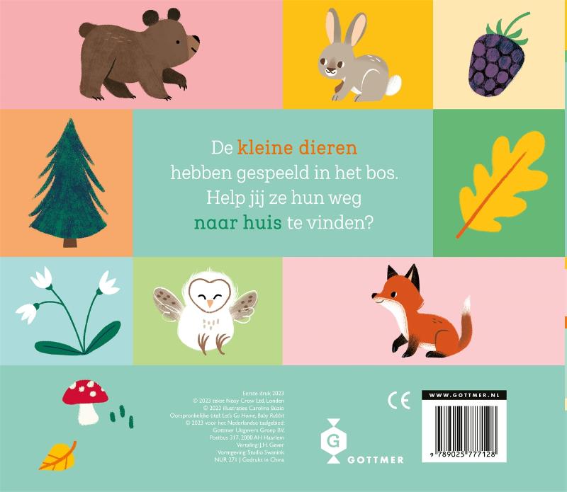 Ontmoet in 'Kom je thuis, klein konijn?' vier babydieren die in het bos hun weg naar huis moeten terugvinden. Kleine lezers kunnen in dit boek van dik karton met bewegende schuifjes in elke spread het konijntje, de vos, een babybeer en een jonge uil veilig thuisbrengen naar hun ouders. De peuters kunnen de schuifjes zelf heen en weer bewegen over vier unieke paden door een prachtig geïllustreerd bos. Ondertussen worden de fijne motoriek en concentratie gestimuleerd en komen er belangrijke eerste woordjes over de natuur langs.