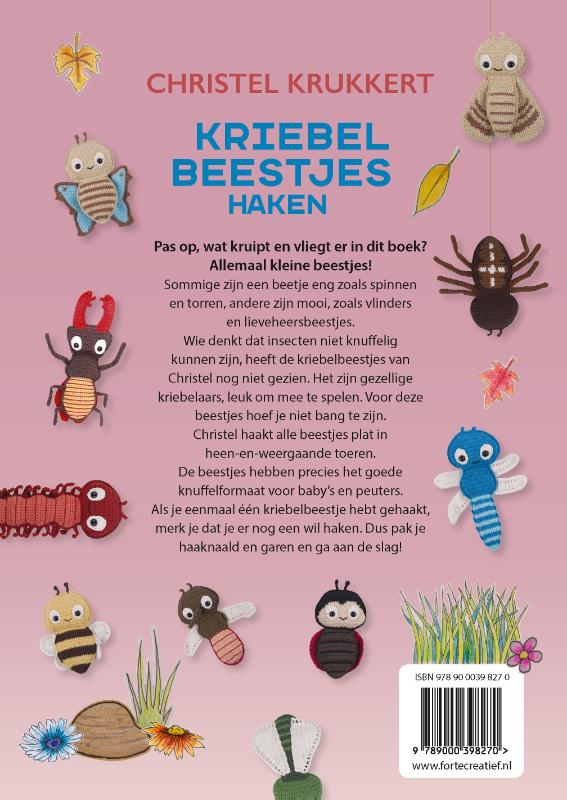 Pas op, wat kruipt en vliegt er in dit boek? Allemaal kleine beestjes! Sommige zijn een beetje eng zoals spinnen en torren, andere zijn mooi, zoals vlinders en lieveheersbeestjes. Wie denkt dat insecten niet knuffelig kunnen zijn, heeft de kriebelbeestjes van Christel nog niet gezien. Het zijn gezellige kriebelaars, leuk om mee te spelen. Voor deze beestjes hoef je niet bang te zijn. Christel haakt alle beestjes plat in heen-en-weergaande toeren. De beestjes hebben precies het goede knuffelformaat voor baby’s en peuters. Als je eenmaal één kriebelbeestje hebt gehaakt, merk je dat je er nog een wil haken. Dus pak je haaknaald en garen en ga aan de slag! Christel Krukkert is de auteur van meer dan dertig haakboeken. Haar vrolijke ontwerpen zijn zeer succesvol. En ook haar platgehaakte figuurtjes vinden in rap tempo hun weg naar haar fans. Ze is actief op Instagram, Facebook of haar website www.christelkrukkert.nl . Christel heeft meer dan 34.000 volgers op Facebook en Instagram.
