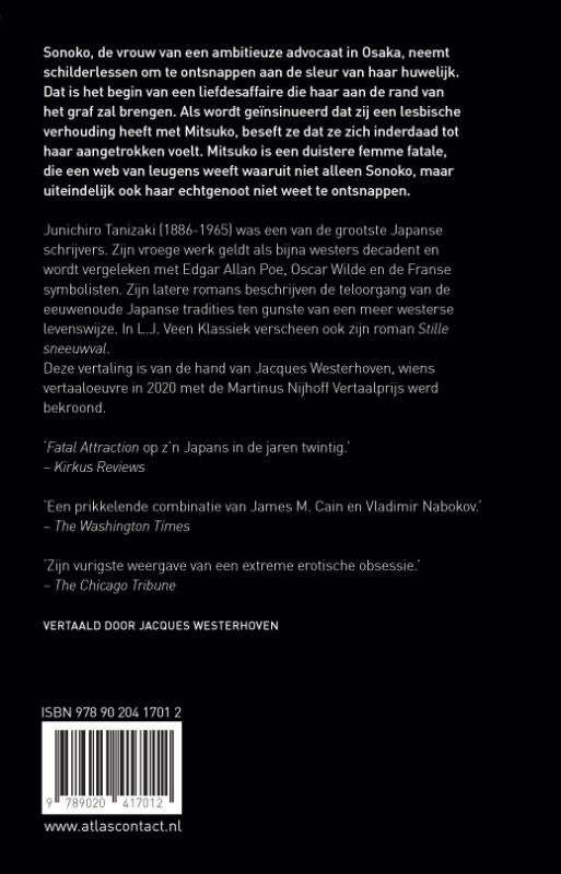 Van de schrijver van 'Stille sneeuwval'. In ‘Kruisende lijnen’ van Junichiro Tanizaki, een van de meesters van de Japanse literatuur neemt Sonoko, de vrouw van een ambitieuze advocaat in Osaka, schilderlessen om te ontsnappen aan de sleur van haar huwelijk. Dat is het begin van een liefdesaffaire die haar aan de rand van het graf zal brengen. Als wordt geïnsinueerd dat zij een lesbische verhouding heeft met Mitsuko, beseft ze dat ze zich inderdaad tot haar aangetrokken voelt. Mitsuko is een duistere femme fatale, die een web van leugens weeft waaruit niet alleen Sonoko, maar uiteindelijk ook haar echtgenoot niet weet te ontsnappen.