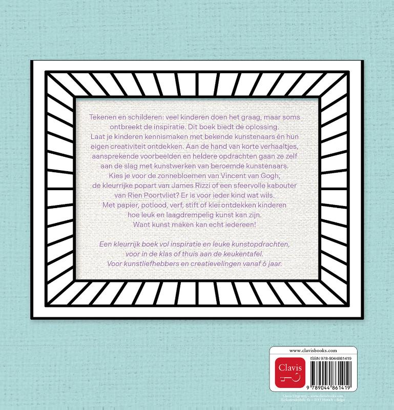 Tekenen en schilderen: veel kinderen doen het graag, maar soms ontbreekt de inspiratie. Dit boek biedt de oplossing. Laat je kinderen kennismaken met bekende kunstenaars én hun eigen creativiteit ontdekken. Aan de hand van korte verhaaltjes, aansprekende voorbeelden en heldere opdrachten gaan ze zelf aan de slag met kunstwerken van beroemde kunstenaars. Kies je voor de zonnebloemen van Vincent van Gogh, de kleurrijke popart van James Rizzi of een sfeervolle kabouter van Rien Poortvliet? Er is voor ieder kind wat wils. Met papier, potlood, verf, stift of klei ontdekken kinderen hoe leuk en laagdrempelig kunst kan zijn. Want Kunst maken kan echt iedereen! Een kleurrijk boek vol inspiratie en leuke kunstopdrachten, voor in de klas of thuis aan de keukentafel. Voor kunstliefhebbers en creatievelingen vanaf 6 jaar.