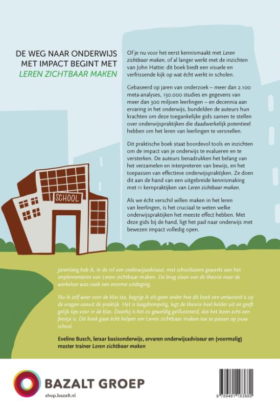 Of je nu voor het eerst kennismaakt met Leren zichtbaar maken, of al langer werkt met de inzichten van John Hattie : dit boek biedt een visuele en verfrissende kijk op wat écht werkt in scholen. Gebaseerd op jaren van onderzoek – meer dan 2.100 meta-analyses, 130.000 studies en gegevens van meer dan 300 miljoen leerlingen – en decennia aan ervaring in het onderwijs, bundelden de auteurs hun krachten om deze toegankelijke gids samen te stellen over onderwijspraktijken die daadwerkelijk potentieel hebben om het leren van leerlingen te versnellen. Dit praktische boek staat boordevol tools en inzichten om de impact van je onderwijs te evalueren en te versterken. De auteurs benadrukken het belang van het verzamelen en interpreteren van bewijs, en het toepassen van effectieve onderwijspraktijken. Ze doen dit aan de hand van een uitgebreide kennismaking met 11 kernpraktijken van Leren zichtbaar maken. Als we écht verschil willen maken in het leren van leerlingen, is het cruciaal te weten welke onderwijspraktijken het meeste effect hebben. Met deze gids bij de hand, ligt het pad naar onderwijs met bewezen impact volledig open.