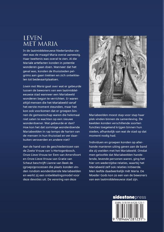 In de laatmiddeleeuwse Nederlandse steden was de maagd Maria overal aanwezig. Haar beeltenis was overal te zien. Al die Mariale artefacten konden in potentie wonderen gaan doen. Wanneer dat het geval was, konden de thuissteden pelgrims aan gaan trekken en zich ontwikkelen tot bedevaartplaatsen. Leven met Maria gaat over wat er gebeurde tussen de bewoners van een laatmiddeleeuwse stad wanneer een Mariabeeld wonderen begon te verrichten. Er waren altijd mensen die het Mariabeeld vanaf het eerste moment steunden, maar het kon ook voorkomen dat er groepen binnen de gemeenschap waren die helemaal niet zaten te wachten op een nieuwe wonderdoener. Wat gebeurde er dan? Hoe kon het dat sommige wonderdoende Mariabeelden in rap tempo de harten van de mensen in hun thuisstad en ver daarbuiten veroverden en andere niet? Aan de hand van de geschiedenissen van de Zoete Vrouw van ’s-Hertogenbosch, Onze-Lieve-Vrouw ter Eem van Amersfoort en Onze-Lieve-Vrouw van Gratie van Scheut beschrijft Lianne van Beek de (groeps)processen die plaats konden vinden rondom wonderdoende Mariabeelden en werkt zij een ontwikkelingsmodel voor deze devoties uit. De verering van deze Mariabeelden moest stap voor stap haar plek vinden binnen de samenleving. De beelden konden verschillende soorten functies toegekend krijgen binnen hun steden, afhankelijk van wat de stad op dat moment nodig had. Individuen en groepen konden op allerhande manieren uiting geven aan de band die zij voelden met het Mariabeeld. Omdat men geloofde dat Mariabeelden handelende, levende personen waren, ging het hier om wederzijdse relaties, waarbij het Mariabeeld zelf ook relaties initieerde. Men leefde daadwerkelijk mét Maria. De Moeder Gods kon zo een van de bewoners van een laatmiddeleeuwse stad zijn.