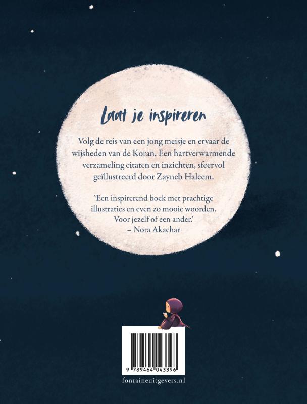 Een hartverwarmende en sfeervol geïllustreerde verzameling citaten en inzichten uit de Koran Dit prachtige cadeauboek van de online populaire illustrator Zayneb Haleem is een ontroerende gids voor wie zich wil laten inspireren door de Koran. Met bemoedigende woorden en verhelderende vragen zet Lieve maan je aan tot nadenken. Waar sta je, zie je hoever je al bent gekomen en waar gaat jouw pad naartoe? Volg de zoektocht van een jong meisje en laat de citaten uit de Koran je helpen richting te geven aan jouw eigen, unieke levensreis. Voor jong en oud en alle momenten waarop vieren, dankbaarheid en reflectie centraal staan. ‘ Een inspirerend boek met prachtige illustraties en even zo mooie woorden. Voor jezelf of een ander .’ – Nora Akachar, theatermaker en actrice