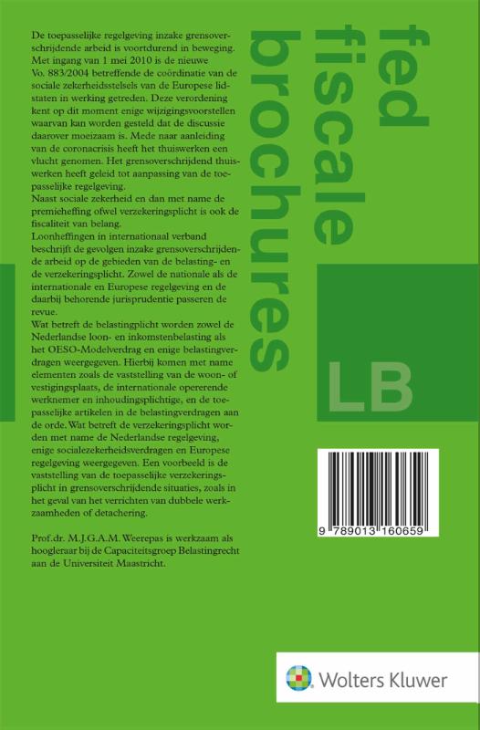 Dit boek biedt een actueel overzicht van de fiscale en sociale zekerheidsrechtelijke gevolgen van grensoverschrijdende arbeid. De publicatie bespreekt nationale en Europese regelgeving, jurisprudentie en recente ontwikkelingen zoals thuiswerken en wijzigingen in Verordening 883/2004.