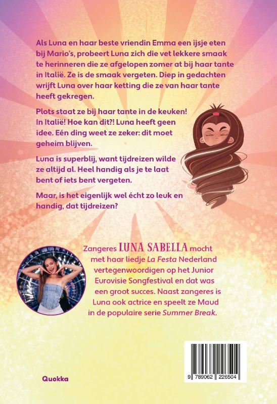 Als er iets is wat Luna graag wil, is het kunnen tijdreizen… Luna en haar beste vriendin Emma eten bij Mario’s een ijsje. Emma ziet een poster hangen van een ijswedstrijd: verzin de nieuwe smaak en eet deze hele zomer gratis ijs. Die wedstrijd wil Emma wel winnen en Luna gaat haar bestie daarbij helpen. Gelukkig heeft Luna afgelopen zomer bij haar tante in Italië het lekkerste ijs ever gegeten. Het lastige is alleen dat ze de smaak is vergeten. Ze denkt zich suf en wrijft wat over haar ketting, die ze van haar tante heeft gekregen tijdens die vakantie. Totdat ze plots weer terug in de tijd bij haar tante in Italië staat! Luna heeft geen idee hoe dat mogelijk is, maar ze weet wel dat het geheim moet blijven. Helaas praat Emma haar mond voorbij en al snel weet de hele klas van Luna’s superkracht. Iedereen kan Luna’s hulp wel gebruiken om dingen op te lossen die in het verleden fout zijn gegaan. Zal het Luna lukken om iedereen te helpen? En is het wel zo handig, dat tijdreizen?