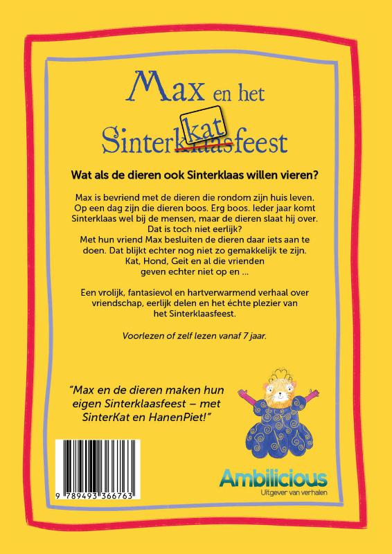 Max en het Sinterkatfeest: Wat als de dieren ook Sinterklaas willen vieren? Max is bevriend met de dieren die rondom zijn huis leven. Op een dag zijn die dieren boos. Erg boos. Ieder jaar komt Sinterklaas wel bij de mensen, maar de dieren slaat hij over. Dat is toch niet eerlijk? Met hun vriend Max besluiten de dieren daar iets aan te doen. Dat blijkt echter nog niet zo gemakkelijk te zijn. Kat, Hond, Geit en al die vrienden geven echter niet op en ... Een vrolijk, fantasievol en hartverwarmend verhaal over vriendschap, eerlijk delen en het échte plezier van het Sinterklaasfeest. Voorlezen of zelf lezen vanaf 7 jaar. “Max en de dieren maken hun eigen Sinterklaasfeest – met SinterKat en HanenPiet!” Folkert Oldersma (auteur), Floor van Ham (illustrator: Een samenwerking waar beiden trots op zijn. ProBeeld (Ton de Koning) is verantwoordelijk voor de vormgeving van de omslag.