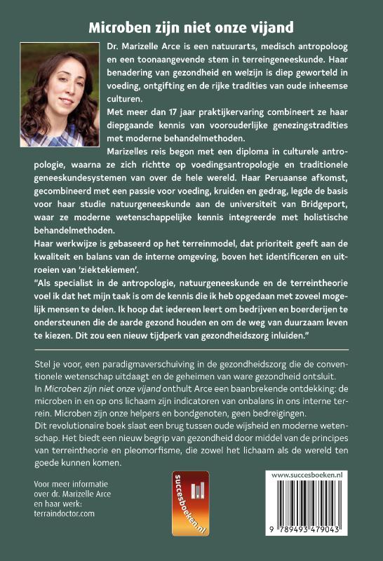 Microben zijn niet onze vijand Waarom de nieuwe terreingeneeskunde het beste is voor optimale gezondheid Stel je voor, een paradigmaverschuiving in de gezondheidszorg die de conventionele wetenschap uitdaagt en de geheimen van ware gezondheid ontsluit. In Microben zijn niet onze vijand onthult Arce een baanbrekende ontdekking: de microben in en op ons lichaam zijn indicatoren van onbalans in ons interne terrein. Microben zijn onze helpers en bondgenoten, geen bedreigingen. Dit revolutionaire boek slaat een brug tussen oude wijsheid en moderne wetenschap. Het biedt een nieuw begrip van gezondheid door middel van de principes van terreintheorie en pleomorfisme, die zowel het lichaam als de wereld ten goede kunnen komen. Over de auteur Dr. Marizelle Arce is een natuurarts, medisch antropoloog en een toonaangevende stem in terreingeneeskunde. Haar benadering van gezondheid en welzijn is diep geworteld in voeding, ontgifting en de rijke tradities van oude inheemse culturen. Met meer dan 17 jaar praktijkervaring combineert ze haar diepgaande kennis van voorouderlijke genezingstradities met moderne behandelmethoden. Marizelles reis begon met een diploma in culturele antropologie, waarna ze zich richtte op voedingsantropologie en traditionele geneeskundesystemen van over de hele wereld. Haar Peruaanse afkomst, gecombineerd met een passie voor voeding, kruiden en gedrag, legde de basis voor haar studie natuurgeneeskunde aan de universiteit van Bridgeport, waar ze moderne wetenschappelijke kennis integreerde met holistische behandelmethoden. Haar werkwijze is gebaseerd op het terreinmodel, dat prioriteit geeft aan de kwaliteit en balans van de interne omgeving, boven het identificeren en uitroeien van ‘ziektekiemen’. “Als specialist in de antropologie, natuurgeneeskunde en de terreintheorie voel ik dat het mijn taak is om de kennis die ik heb opgedaan met zoveel mogelijk mensen te delen. Ik hoop dat iedereen leert om bedrijven en boerderijen te ondersteunen die de aarde gezond houden en om de weg van duurzaam leven te kiezen. Dit zou een nieuw tijdperk van gezondheidszorg inluiden.”