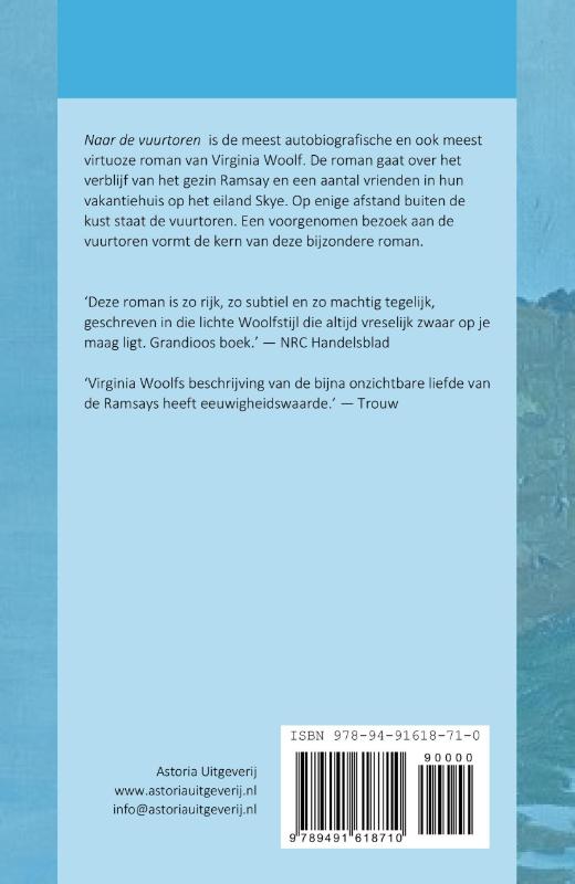 Naar de vuurtoren is de meest autobiografische en ook meest virtuoze roman van Virginia Woolf. De roman gaat over het verblijf van het gezin Ramsay en een aantal vrienden in hun vakantiehuis op het eiland Skye. Op enige afstand buiten de kust staat de vuurtoren. Een voorgenomen bezoek aan de vuurtoren vormt de kern van deze bijzondere roman. ‘Deze roman is zo rijk, zo subtiel en zo machtig tegelijk, geschreven in die lichte Woolfstijl die altijd vreselijk zwaar op je maag ligt. Grandioos boek.’ — NRC Handelsblad ‘Virginia Woolfs beschrijving van de bijna onzichtbare liefde van de Ramsays heeft eeuwigheidswaarde.’ — Trouw