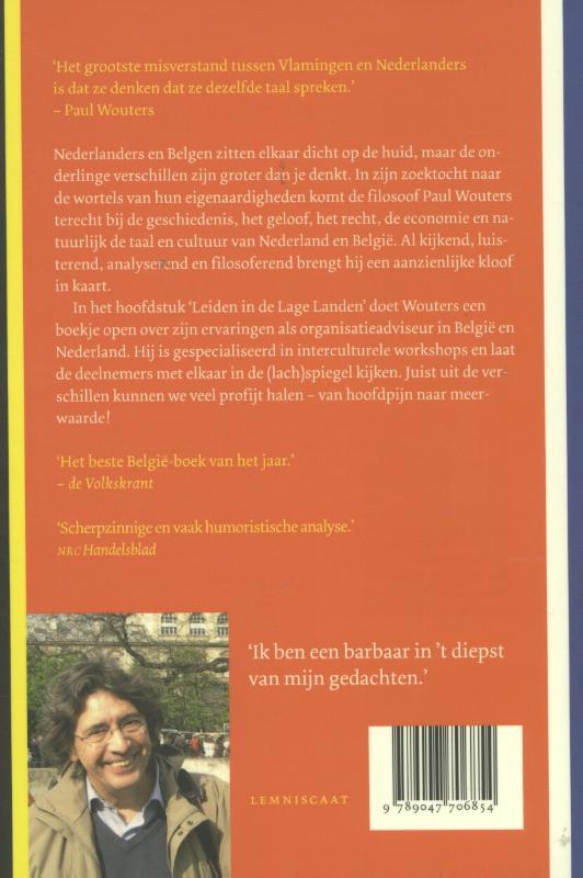 ‘Het grootste misverstand tussen Vlamingen en Nederlanders is dat ze denken dat ze dezelfde taal spreken.’ – Paul Wouters. Nederlanders en Belgen zitten elkaar dicht op de huid, maar de onderlinge verschillen zijn groter dan je denkt. In zijn zoektocht naar de wortels van hun eigenaardigheden komt de filosoof Paul Wouters terecht bij de geschiedenis, het geloof, het recht, de economie en natuurlijk de taal en cultuur van Nederland en België. Al kijkend, luisterend, analyserend en filosoferend brengt hij een aanzienlijke kloof in kaart. In het hoofdstuk ‘Leiden in de Lage Landen’ doet Wouters een boekje open over zijn ervaringen als organisatieadviseur in België en Nederland. Hij is gespecialiseerd in interculturele workshops en laat de deelnemers met elkaar in de (lach)spiegel kijken. Juist uit de verschillen kunnen we veel profijt halen – van hoofdpijn naar meerwaarde! Nederland-België is de ’terugwedstrijd’ van het boek België-Nederland dat de filosoof Paul Wouters (1950) publiceerde in 2005. Destijds woonde de schrijver als Belg in Nederland en tegenwoordig is hij, na bijna dertig Nederlandse jaren, weer neergestreken in het land waar hij is geboren en getogen. Daar wordt hij nu door zijn landgenoten ervaren als ‘nen Hollander’. Van 1983 tot 2001 was Wouters directeur van de Internationale School voor Wijsbegeerte in Leusden. Sedert 2002 werkt hij als organisatieadviseur, tegenwoordig vanuit zijn eigen onderneming Sensation & Reflection, met Antwerpen als uitvalsbasis. Hij is ook de auteur van het praktijkgerichte filosofieboek Denkgereedschap 2.0: Een filosofische onderhoudsbeurt (2010). Op de site www.paulwouters.be staat de ‘Online Dilemmatoets voor Nederlanders en Belgen’ die aansluit bij hoofdstuk 11 van het boek, ‘Leiden in de Lage Landen’. Welke keuzes maakt u als Nederlander of als Belg, in vergelijking met de buren?