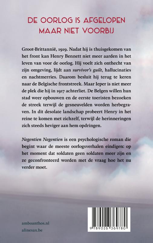 ‘Een ontroerend, soepel geschreven verhaal dat nog lang bleef nagalmen in mijn hoofd.’ - Simone van der Vlugt Groot-Brittannië, 1919. Nadat hij is thuisgekomen van het front kan Henry Bennett niet meer aarden in het leven van voor de oorlog. Hij voelt zich onthecht van zijn omgeving, lijdt aan survivor’s guilt, hallucinaties en nachtmerries. Daarom besluit hij terug te keren naar de Belgische frontstreek. Maar Ieper is niet meer de plek die hij in 1917 achterliet. De Belgen willen hun stad weer opbouwen en de eerste toeristen bezoeken de streek terwijl de gesneuvelden worden herbegraven. Negentien Negentien is een psychologische roman die begint waar de meeste oorlogsromans eindigen: op het moment dat soldaten geen soldaten meer zijn en geconfronteerd worden met de vraag hoe het nu verder moet. ‘’Sax bouwt het verhaal vakkundig op, om tegen het einde een mokerslag van jewelste uit te delen. Dit is geen plottwist om de plottwist, maar één die raakt aan de kern van Henry’s trauma.’’ - Trouw ‘’Het resultaat is spannend, gruwelijk en meeslepend.’’ - Trouw ‘Het nauwgezette en uitvoerige onderzoek, in combinatie met de ongeforceerde schrijfstijl, hebben een overtuigende oorlogsroman opgeleverd waarin, naast de oorlogsverschrikkingen, de thema’s vriendschap, gemis en herdenken knap worden uitgewerkt.’' - Historiek