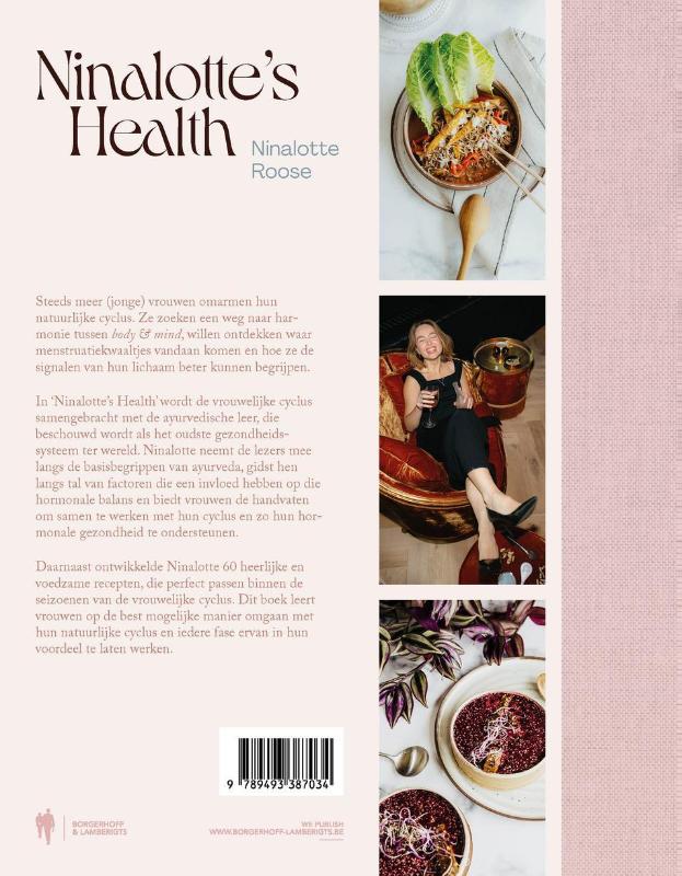 Steeds meer (jonge) vrouwen omarmen hun natuurlijke cyclus. Ze zoeken een weg naar harmonie tussen body & mind, willen ontdekken waar menstruatiekwaaltjes vandaan komen en hoe ze de signalen van hun lichaam beter kunnen begrijpen. In 'Ninalotte's Health' wordt de vrouwelijke cyclus samengebracht met de ayurvedische leer, die beschouwd wordt als het oudste gezondheidssysteem ter wereld. Ninalotte neemt de lezers mee langs de basisbegrippen van ayurveda, gidst hen langs tal van factoren die een invloed hebben op de hormonale balans en biedt vrouwen de handvaten om samen te werken met hun cyclus en zo hun hormonale gezondheid te ondersteunen. Daarnaast ontwikkelde Ninalotte 60 heerlijke en voedzame recepten, die perfect passen binnen de seizoenen van de vrouwelijke cyclus. Dit boek leert vrouwen op de best mogelijke manier omgaan met hun natuurlijke cyclus en iedere fase ervan in hun voordeel te laten werken.