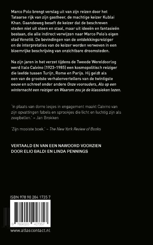 Marco Polo brengt aan zijn gastheer, de machtige Kublai Kan, Keizer der Tataren, verslag uit van zijn reizen. Langzaamaan beseft de keizer echter dat hem fictieve plaatsen worden beschreven, die alle verwijzen naar Marco Polo's geboortestad Venetië. De 'werkelijke' ervaringen van de ontdekkingsreiziger en de interpretatie van de keizer worden verweven in een bloemrijke beschrijving van onzichtbare droomsteden.