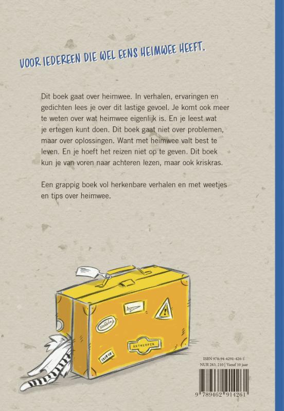 - Grappig en herkenbaar non-fictie boek - Voor iedereen die soms te maken krijgt met heimwee - Ideaal om mee te nemen op kamp of op reis Een boek vol verhalen, weetjes en tips over heimwee. Dit boek gaat over heimwee. In verhalen, ervaringen en gedichten lees je over dit lastige gevoel. Je komt ook meer te weten over wat heimwee eigenlijk is. En je leest wat je ertegen kunt doen. Dit boek gaat niet over problemen, maar over oplossingen. Want met heimwee valt best te leven. En je hoeft het reizen niet op te geven. Dit boek kun je van voren naar achteren lezen, maar ook kriskras.