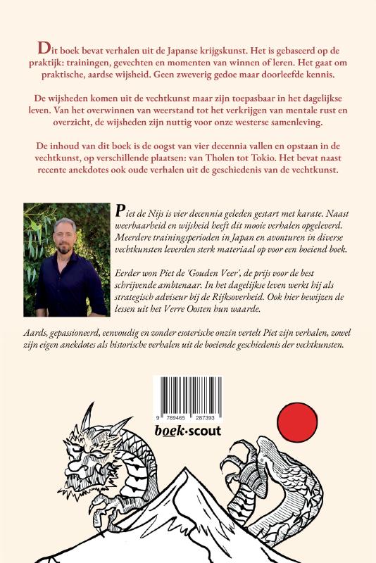 Dit boek bevat verhalen uit de Japanse krijgskunst. Het is gebaseerd op de praktijk: trainingen, gevechten en momenten van winnen of leren. Het gaat om praktische, aardse wijsheid. Geen zweverig gedoe maar doorleefde kennis. De wijsheden komen uit de vechtkunst maar zijn toepasbaar in het dagelijkse leven. Van het overwinnen van weerstand tot het verkrijgen van mentale rust en overzicht, de wijsheden zijn nuttig voor onze westerse samenleving. De inhoud van dit boek is de oogst van vier decennia vallen en opstaan in de vechtkunst, op verschillende plaatsen: van Tholen tot Tokio. Het bevat naast recente anekdotes ook oude verhalen uit de geschiedenis van de vechtkunst.