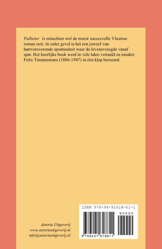 Pallieter is misschien wel de meest succesvolle Vlaamse roman ooit. In ieder geval is het een juweel van hartveroverende spontaniteit waar de levensvreugde vanaf spat. Het heerlijke boek werd in vele talen vertaald en maakte Felix Timmermans (1886-1947) in één klap beroemd.