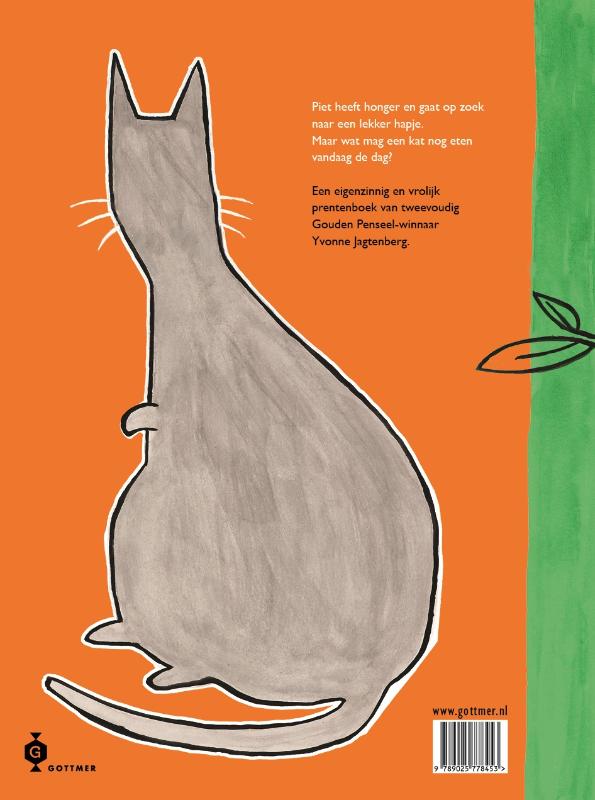 In 'Piet, de kat die wil weten wat hij wel mag eten' van Yvonne Jagtenberg wordt Piet, een bolle grijze kater, wakker met een knorrende maag. Vastberaden om iets te eten, staat hij op het punt de eerste vogel die hij ziet te bespringen. Maar dan neemt de vogel het woord en houdt een overtuigend betoog over zijn belangrijke rol in de wereld en waarom hij absoluut niet opgegeten mag worden. Bij elke volgende potentiële hap krijgt Piet dezelfde boodschap te horen. Piet begint te peinzen over zijn eigen plek op de wereld. Hij is maar een gewone kat, misschien niet zo belangrijk. Maar hij wil gewoon weten wat hij WEL mag eten. Gelukkig is er iemand die Piet ontzettend belangrijk vindt en ervoor zorgt dat hij niet hoeft te verhongeren. Ontdek ook het prachtige Prentenboekengeschenk 2023 'Mijn huis is jouw huis' van de getalenteerde prentenboekmaker Yvonne Jagtenberg. Haar andere boeken zijn al net zo uniek en eigengereid. Lees ook eens 'Ik ben Pippi niet!' (Bronzen Penseel), 'Hup Herman!' (Gouden Penseel) en 'Kop op, Herman!'. En voor peuters is er de Klein Geitje-serie in karton.
