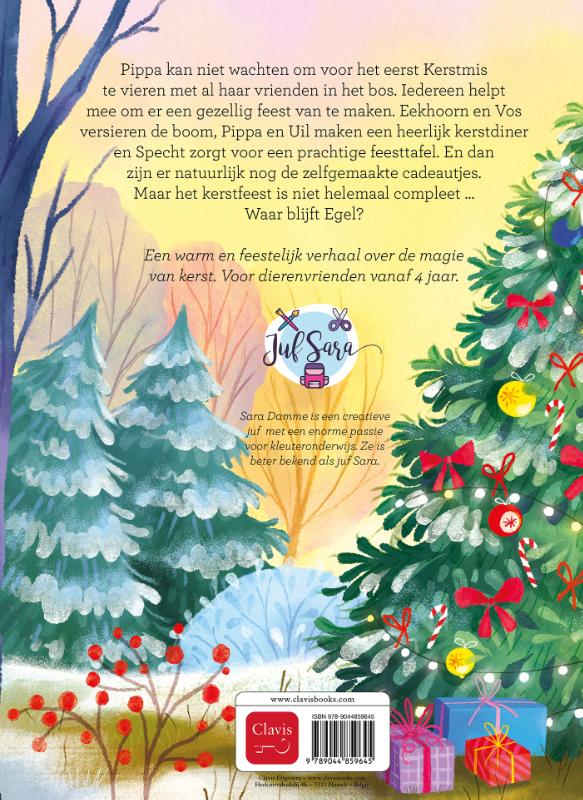 Pippa kan niet wachten om voor het eerst Kerstmis te vieren met al haar vrienden in het bos. Iedereen helpt mee om er een gezellig feest van te maken. Eekhoorn en Vos versieren de boom, Pippa en Uil maken een heerlijk kerstdiner en Specht zorgt voor een prachtige feesttafel. En dan zijn er natuurlijk nog de zelfgemaakte cadeautjes. Maar het kerstfeest is niet helemaal compleet … Waar blijft Egel? Een warm en feestelijk verhaal over de magie van kerst. Voor dierenvrienden vanaf 4 jaar.