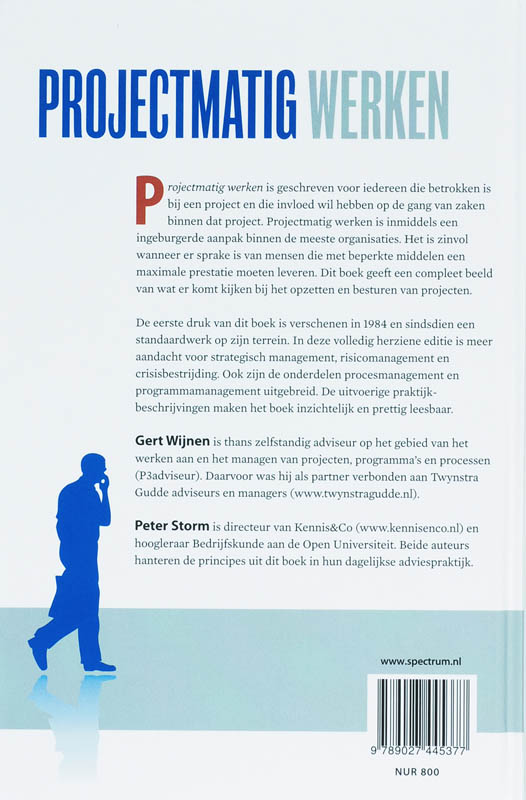 Projectmatig werken is geschreven voor iedereen die betrokken is bij een project en die invloed wil hebben op de gang van zaken binnen dat project. Projectmatig werken is inmiddels een ingeburgerde aanpak binnen de meeste organisaties, Het is zinvol wanneer er sprake is van mensen die met beperkte middelen een maximale prestatie moeten leveren. Dit boek geeft een compleet beeld van wat er komt kijken bij het opzetten en besturen van projecten. De eerste druk van dit boek is verschenen in 1984 en sindsdien een standaardwerk op zijn terrein. In deze volledig herziene editie is meer aandacht voor strategisch management, risicomanagement en crisisbestrijding. Ook zijn de onderdelen procesmanagement en programmamanagement uitgebreid. De uitvoerige praktijkbeschrijvingen maken het boek inzichtelijk en prettig leesbaar. Gert Wijnen is thans zelfstandig adviseur op het gebied van het werken aan een het managen van projecten, programma's en processen (P3adviseur). Daarvoor was hij als partner verbonden aan Twynstra Gudde adviseurs en managers. (www.twynstragudde.nl). Peter Strom is directeur van Kennis&Co (www.kennisenco.nl) en hoogleraar Bedrijfskunde aan de Open Universiteit. Beide auteurs hanteren de principes uit dit boek in hun dagelijkse adviespraktijk.
