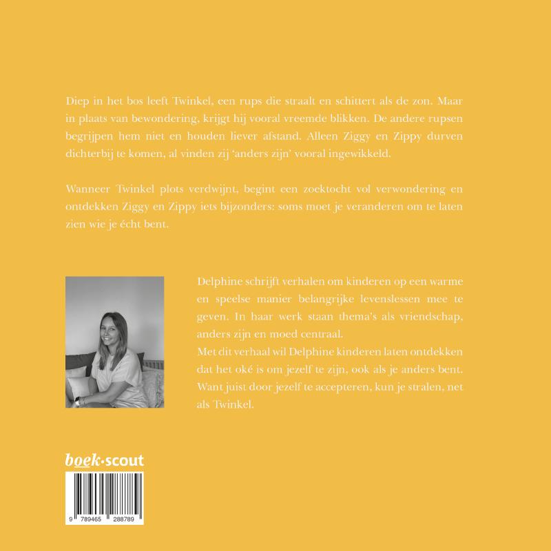 Diep in het bos leeft Twinkel, een rups die straalt en schittert als de zon. Maar in plaats van bewondering, krijgt hij vooral vreemde blikken. De andere rupsen begrijpen hem niet en houden liever afstand. Alleen Ziggy en Zippy durven dichterbij te komen, al vinden zij ‘anders zijn’ vooral ingewikkeld. Wanneer Twinkel plots verdwijnt, begint een zoektocht vol verwondering en ontdekken Ziggy en Zippy iets bijzonders: soms moet je veranderen om te laten zien wie je écht bent.