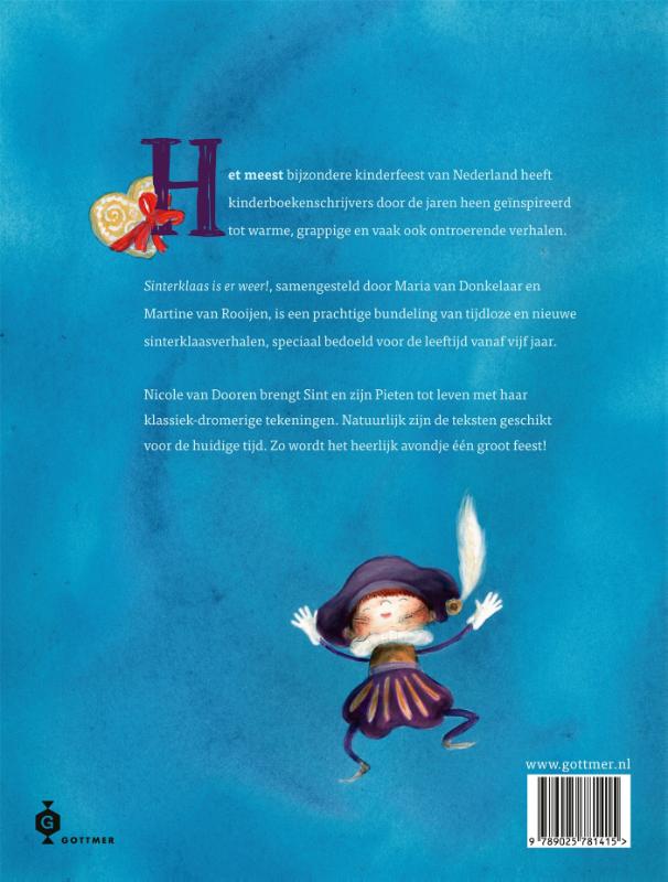'Sinterklaas is er weer!' staat vol voorleesverhalen voor kinderen om mee uit te pakken! Een feestelijke sinterklaasbundel voor iedereen vanaf 5 jaar die in de goedheiligman gelooft, én voor nagenieters. Deze sinterklaasverhalenbundel bevat een tijdloze selectie van warme, grappige en ontroerende verhalen en gedichten van topauteurs als Paul Biegel, Annie M.G. Schmidt, Bette Westera, Ted van Lieshout, Hanna Kraan, Selma Noort en vele anderen. De teksten zijn samengesteld door Zilveren Griffel-winnaars Maria van Donkelaar en Martine van Rooijen. Met klassiek-dromerige illustraties van Nicole van Dooren komt de magie van Sinterklaas en zijn Pieten helemaal tot leven. Natuurlijk zijn de verhalen aangepast aan onze tijd, zodat ze perfect aansluiten bij het sinterklaasfeest van nu. 'Sinterklaas is er weer!' is het ideale sinterklaasvoorleesboek voor kinderen vanaf 5 jaar, om samen te lezen, op school of thuis. Een bundel vol klassieke sinterklaasverhalen die elk jaar opnieuw voorleesplezier brengen. Het heerlijk avondje was nog nooit zo warm.