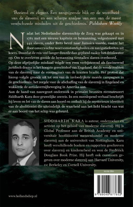 Nadat het Nederlandse slavenschip de Zorg was gekaapt en in 1781 met een nieuwe kapitein en bemanning, volgestouwd met 442 slaven, onder Brits bevel naar Jamaica vaarde, raakte het door onverwachte weersomstandigheden en navigatiefouten uit koers. Doordat de reis veel langer duurde dan gepland raakte het drinkwater op. Om te overleven gooide de bemanning tientallen slaven overboord. Op deze afgrijselijke misdaad volgde een even verbijsterend als fascinerend juridisch drama in het hoogste gerechtshof van Engeland, dat de wrede realiteit van de slavernij naar de voorpagina's van de kranten bracht. Het protest dat hierop volgde groeide uit tot een van de invloedrijkste morele campagnes in de geschiedenis; het zorgde voor de afschaffing van de slavernij in Engeland en wakkerde de antislavernijbeweging in Amerika aan. Aan de hand van nauwgezet onderzoek in primaire bronnen reconstrueert Siddharth Kara deze gruwelijke zeereis. In een meeslepend verhaal beschrijft hij leven en lot van de slaven aan boord en onthult hij de mysterieuze identiteit van de abolitionist die uiteindelijk de waarheid aan het licht bracht van wat er aan boord van het schip was gebeurd.