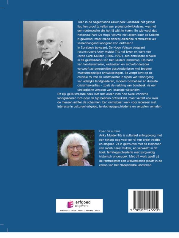 Sonsbeek bewaard, De Hoge Veluwe vergaard Toen in de negentiende eeuw park Sonsbeek het gevaar liep ten prooi te vallen aan projectontwikkelaars, was het een rentmeester die het tij wist te keren. En wie weet dat Nationaal Park De Hoge Veluwe niet alleen door de Kröllers is gevormd, maar mede dankzij diezelfde rentmeester als samenhangend landgoed kon ontstaan? In Sonsbeek bewaard, De Hoge Veluwe vergaard reconstrueert Anky Mulder-Tits het leven en werk van Jacob Carel Mulder (1866–1957), een onmisbare schakel in de geschiedenis van het Gelderse landschap. Op basis van familieverhalen, kasboeken en archiefonderzoek verweeft ze persoonlijke geschiedenissen met bredere maatschappelijke ontwikkelingen. Ze werpt licht op de cruciale rol van de rentmeester in tijden van de teloorgang van adellijke landgoederen, modern bosbeheer én discrete crisisinterventies – zoals de redding van Sonsbeek via een strategische verkoop van ‘drassige weilanden’. Dit rijk geïllustreerde boek laat niet alleen zien hoe het erfgoed van twee iconische landgoederen zich door de tijd heeft ontwikkeld, maar vertelt ook over de mensen achter de schermen. Een onmisbaar werk voor iedereen met interesse in cultureel erfgoed, landschapsgeschiedenis en vergeten verhalen. Over de auteur Anky Mulder-Tits is cultureel antropoloog met een scherp oog voor de rol van orale traditie en erfgoed. Ze is getrouwd met de kleinzoon van Jacob Carel Mulder, en verweeft in dit boek familiegeschiedenis met zorgvuldig historisch onderzoek. Met dit werk geeft zij de rentmeester een welverdiende plaats in de canon van het Nederlandse landschap.