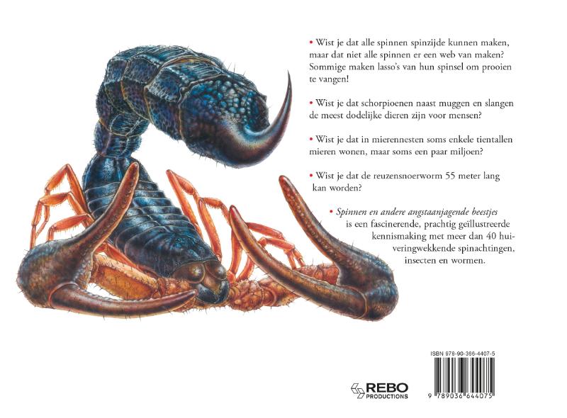 In dit boek lees je over meer dan 40 van 's werelds meest angstaanjagende en fascinerende spinachtigen, insecten en wormen. Bij elke soort vind je een gekleurde illustratie met omschrijvingen, een kaart en stap-voor-stap afbeeldingen met toelichting. Het perfecte boek om gemakkelijk spinnen op te zoeken en met elkaar te vergelijken, en alles te ontdekken over deze griezelige beestjes!