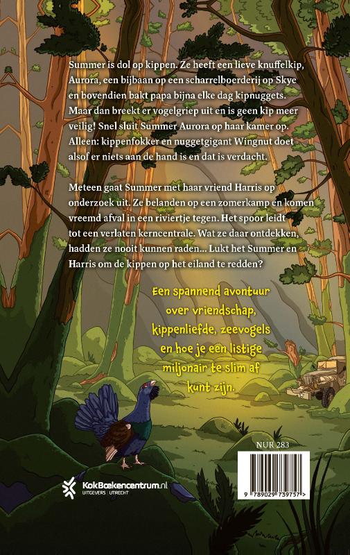 Summer is dol op kipnuggets - totdat ze door een uitbraak van de vogelgriep haar bijbaantje op een scharrelboerderij kwijtraakt. Met haar eigen favoriete kip veilig opgesloten op haar kamer, gaat Summer samen met haar vriend Harris op onderzoek uit. Vreemd afval in een rivier leidt hen naar een mysterieuze oude kerncentrale. Binnen doen ze een schokkende ontdekking... 'Summer en de kipnuggetbende' van Petra van Rijssen is een spannend, actueel en eigenzinnig verhaal over dierenliefde, zorg voor het milieu en moed.