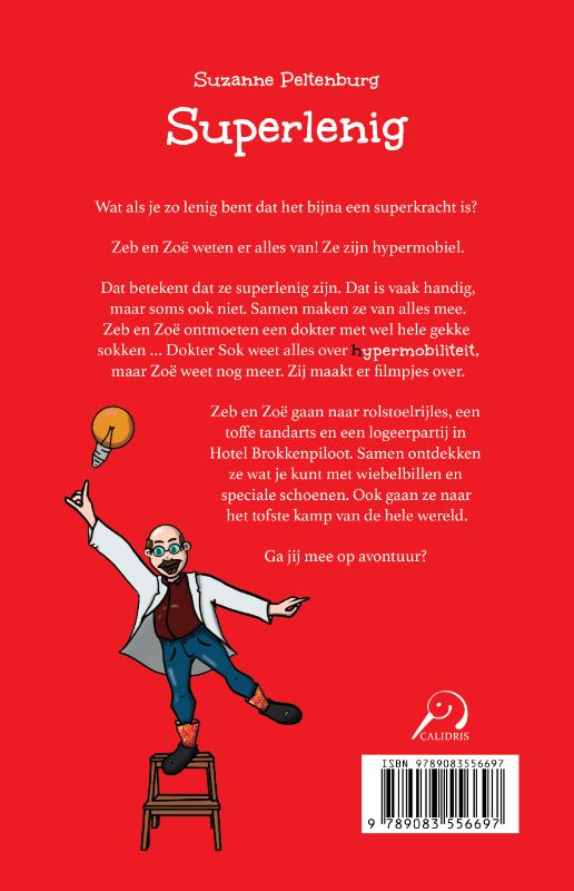 Wat als je zo lenig bent dat het bijna een superkracht is? Zeb en Zoë weten er alles van! Ze zijn hypermobiel. Dat betekent dat ze superlenig zijn. Dat is vaak handig, maar soms ook niet. Samen maken ze van alles mee. Zeb en Zoë ontmoeten een dokter met wel hele gekke sokken … Dokter Sok weet alles over hypermobiliteit, maar Zoë weet nog meer. Zij maakt er filmpjes over. Zeb en Zoë gaan naar rolstoelrijles, een toffe tandarts en een logeerpartij in Hotel Brokkenpiloot. Samen ontdekken ze wat je kunt met wiebelbillen en speciale schoenen. Ook gaan ze naar het tofste kamp van de wereld. Ga jij mee op avontuur?