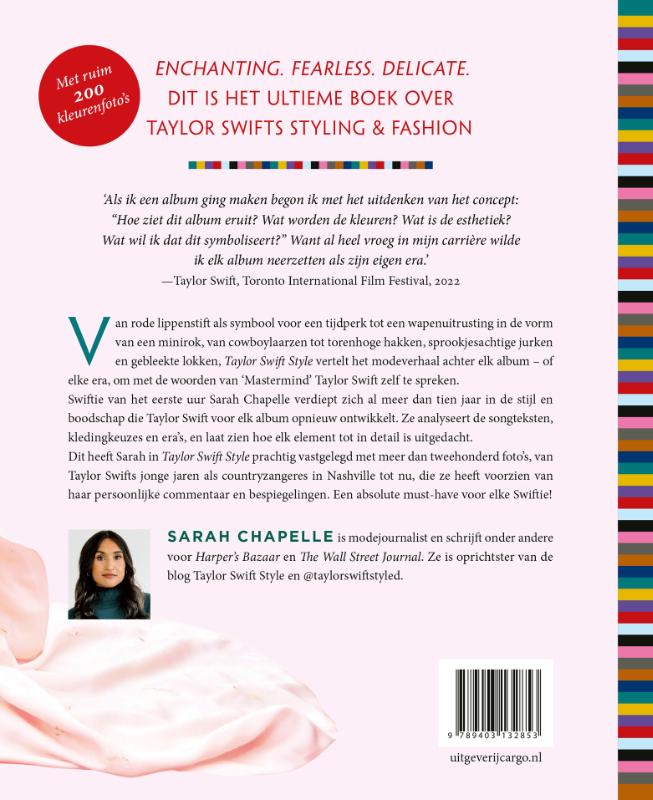 Van rode lippenstift als symbool voor een tijdperk tot een wapenuitrusting in de vorm van een minirok, van cowboylaarzen tot torenhoge hakken, sprookjesachtige jurken en gebleekte lokken, Taylor Swift Style vertelt het modeverhaal achter elk album – of elke era, om met de woorden van ‘Mastermind’ Taylor Swift zelf te spreken. Swiftie van het eerste uur Sarah Chapelle verdiept zich al meer dan tien jaar in de stijl en boodschap die Taylor Swift voor elk album opnieuw ontwikkelt. Ze analyseert de songteksten, kledingkeuzes en era’s, en laat zien hoe elk element tot in detail is uitgedacht. Dit heeft Sarah in Taylor Swift Style prachtig vastgelegd met meer dan tweehonderd foto’s, van Taylor Swifts jonge jaren als countryzangeres in Nashville tot nu, die ze heeft voorzien van haar persoonlijke commentaar en bespiegelingen. Een absolute must-have voor elke Swiftie!