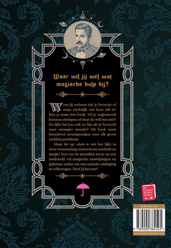 Voor elk probleem een spreuk! Zou jij willen dat je broertje of zusje eindelijk een keertje stil is? Ben je iets kwijt, wil je geen gaatjes in je tanden of heb je ergens spijt van? Of doet de wifi het niet? Blader dan even door dit boek en vind de juiste spreuk voor elk probleem. Niets is wat het lijkt in dit boek boordevol mysterieuze spreuken, raadsels, magie en andere leuke spelelementen! Een van de spreuken zal je op een zoektocht door dit boek leiden om een magische uitdaging te volbrengen. Dit kun je samen met een voorlezer oplossen, of alleen. Grijp je toverstaf en puzzel erop los in de wondere wereld van Toverformules en bezweringen voor dagelijkse (on)dingen . Dit interactieve spelboek is verkozen tot het Beste Kinderboek van 2021 in Zweden en is prachtig uitgegeven in linnen band met zilverfolie.