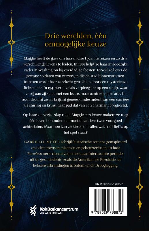 ‘Voordat ik loslaat’ is het tweede deel in de ‘Timeless’-serie van Gabrielle Meyer en gaat over Maggie die de gave heeft om tussen drie tijden te reizen en op die manier drie levens te leiden. In 1861 is ze de dochter van een senator en helpt ze mee om gewonde soldaten te verzorgen in de rumoerige hoofdstad. In 1941 werkt ze als verpleegster op een schip dat koers zet naar Pearl Harbor. En in 2001 is ze een briljante geneeskundestudente die ervan droomt chiruge te worden. Op haar 21e verjaardag moet Maggie één leven kiezen en de andere twee voorgoed vaarwelzeggen. Hoewel ze zich voorhoudt niet aan romantiek te denken voordat ze haar keuze gemaakt heeft, is er toch in elke eeuw een man die haar hart probeert te veroveren: de mysterieuze Britse heer, de prikkelbare, veeleisende dokter en het charmante, jonge congreslid. Intussen nadert haar allesbepalende verjaardag en hangt de vraag als het zwaard van Damokles boven haar hoofd: tot welke man en tot welk leven voelt ze zich het meest aangetrokken?