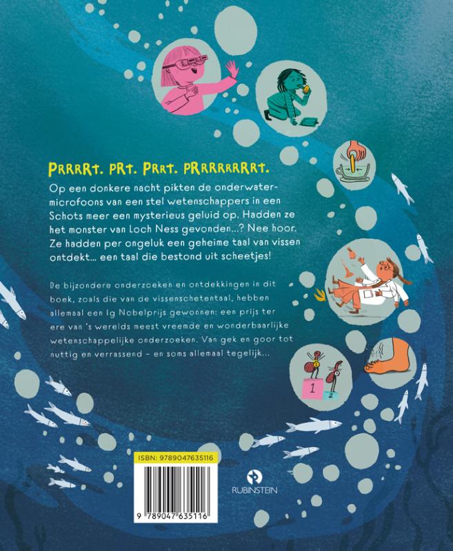 Op een donkere nacht pikten de onderwatermicrofoons van een stel wetenschappers in een Schots meer een mysterieus geluid op. Hadden ze het monster van Loch Ness gevonden...? Nee hoor. Ze hadden per ongeluk een geheime taal van vissen ontdekt… een taal die bestond uit scheetjes! De bijzondere onderzoeken en ontdekkingen in dit boek, zoals die van de vissenschetentaal, hebben allemaal een Ig Nobelprijs gewonnen: een prijs ter ere van ‘s werelds meest vreemde en wonderbaarlijke wetenschappelijke onder zoeken. Van gek en goor tot nuttig en verrassend – en soms allemaal tegelijk...