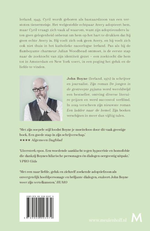 De grootse nieuwe roman van de auteur van De jongen in de gestreepte pyjama en De grote stilte Voor de liefhebbers van De as van mijn moeder van Frank McCourt Ierland, 1945. Cyril wordt geboren als bastaardzoon van een verstoten tienermeisje. Het welgestelde echtpaar Avery adopteert hem, maar Cyril vraagt zich vaak af waarom, want zijn adoptieouders laten geen gelegenheid onbenut om hem op het hart te drukken dat hij geen echte Avery is. Hij voelt zich ook geen Avery, en hij voelt zich ook niet thuis in het katholieke naoorlogse Ierland. Pas als hij de flamboyante charmeur Julian Woodbead ontmoet, is de eerste stap naar de zoektocht van zijn identiteit gezet – een zoektocht die hem tot in Amsterdam en New York voert, in een poging het geluk en de liefde te vinden. John Boyne verbeeldt op fenomenale wijze de verlossende kracht van de menselijke geest, en laat de lezer en passant voelen hoe onwelkom de wereld kan zijn voor zoekende zielen. De pers over Wat het hart verwoest ‘Afwisselend slim, geestig en hartverscheurend triest. Dit is een schrijver op de top van zijn kunnen.’ Mail on Sunday ‘Groots en slim en vaak erg grappig.’ The Sunday Times ‘Een picareske, ronddwalende odyssee voor de afzonderlijke karakters. Het boek brandt haast van woede over de levens die worden verwoest door sociale minachting en zelfhaat. Een aanzienlijke prestatie.’ The Guardian ‘Een episch verhaal vol verve, humor en liefde. Dit zal een groot publiek aanspreken.’ The Irish Times ‘Boyne creëert licht in de verdoemenis, en humor in de meest hartverscheurend trieste situaties. Een fantastische leeservaring.’ Press Association