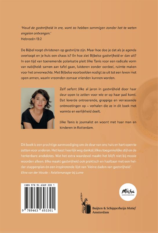 ‘Houd de gastvrijheid in ere, want zo hebben sommigen zonder het te weten engelen ontvangen.’ Hebreeën 13:2 De Bijbel roept christenen op gastvrij te zijn. Maar hoe doe je dat als je agenda overloopt en je huis een chaos is? En hoe ziet Bijbelse gastvrijheid er dan uit? In een tijd van toenemende polarisatie pleit Jilke Tanis voor een radicale vorm van nabijheid: samen aan tafel gaan, luisteren zonder oordeel, ruimte maken voor het onverwachte. Met Bijbelse voorbeelden nodigt ze uit tot een leven met open armen, waarin vreemden zomaar vrienden kunnen worden. Zelf oefent Jilke al jaren in gastvrijheid door haar deur open te zetten voor wie er op haar pad komt. Dat leverde ontroerende, grappige en Âverrassende ontmoetingen op – verhalen die ze in dit boek met warmte en eerlijkheid deelt. Jilke Tanis is journalist en woont met haar man en kinderen in Rotterdam. Dit boek is een prachtige aanmoediging om de deur van ons huis en hart open te zetten voor anderen. Het leest heerlijk weg dankzij Jilkes toegankelijke stijl en de herkenbare anekdotes. Wat het extra waardevol maakt: het blijft niet bij mooie woorden alleen. Jilke maakt gastvrijheid ook praktisch en haalbaar met een helder stappenplan én een inspirerende lijst van ’kleine daden van gastvrijheid’. Eline van der Woude – Relatiemanager bij Lume