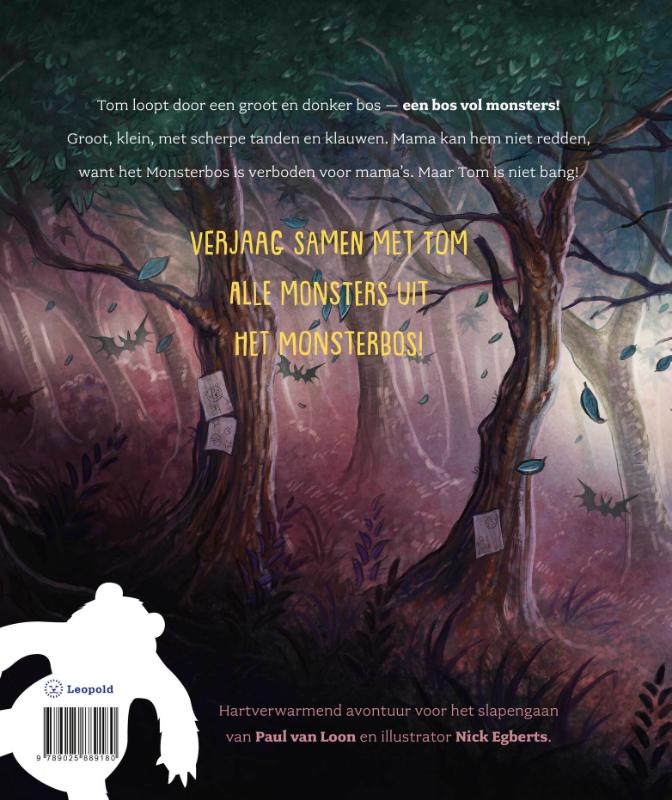 Wij gaan op monsterjacht is hét nieuwe prentenboek van Paul van Loon en Nick Egberts, de illustrator van Danse Macabre. Tijdens deze monsterjacht loopt Tom door een groot en donker bos. De engste monsters komen op hem af. Mama kan hem niet komen redden, want het monsterbos is verboden voor mama’s. Maar Tom is niet bang! Hij grijpt het ene monster bij zijn slurf, het andere bij zijn poot en slingert ze weg alsof het niets is. De monsters moeten juist bang zijn voor Tom! Dan hoort Tom een stem: mama! Zij mag niet merken dat hij niet in zijn bed ligt…